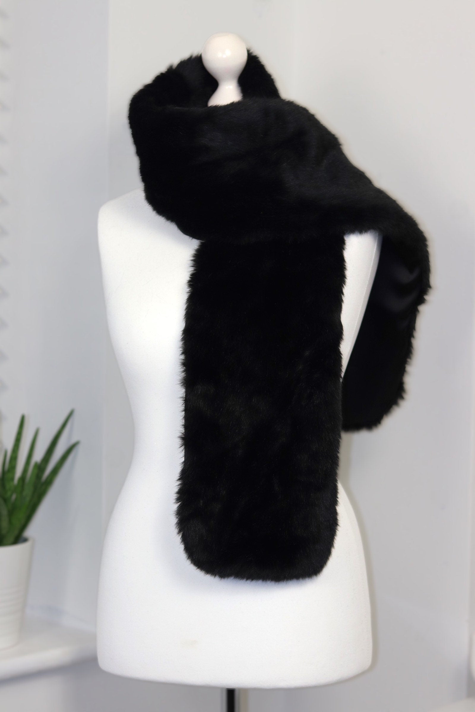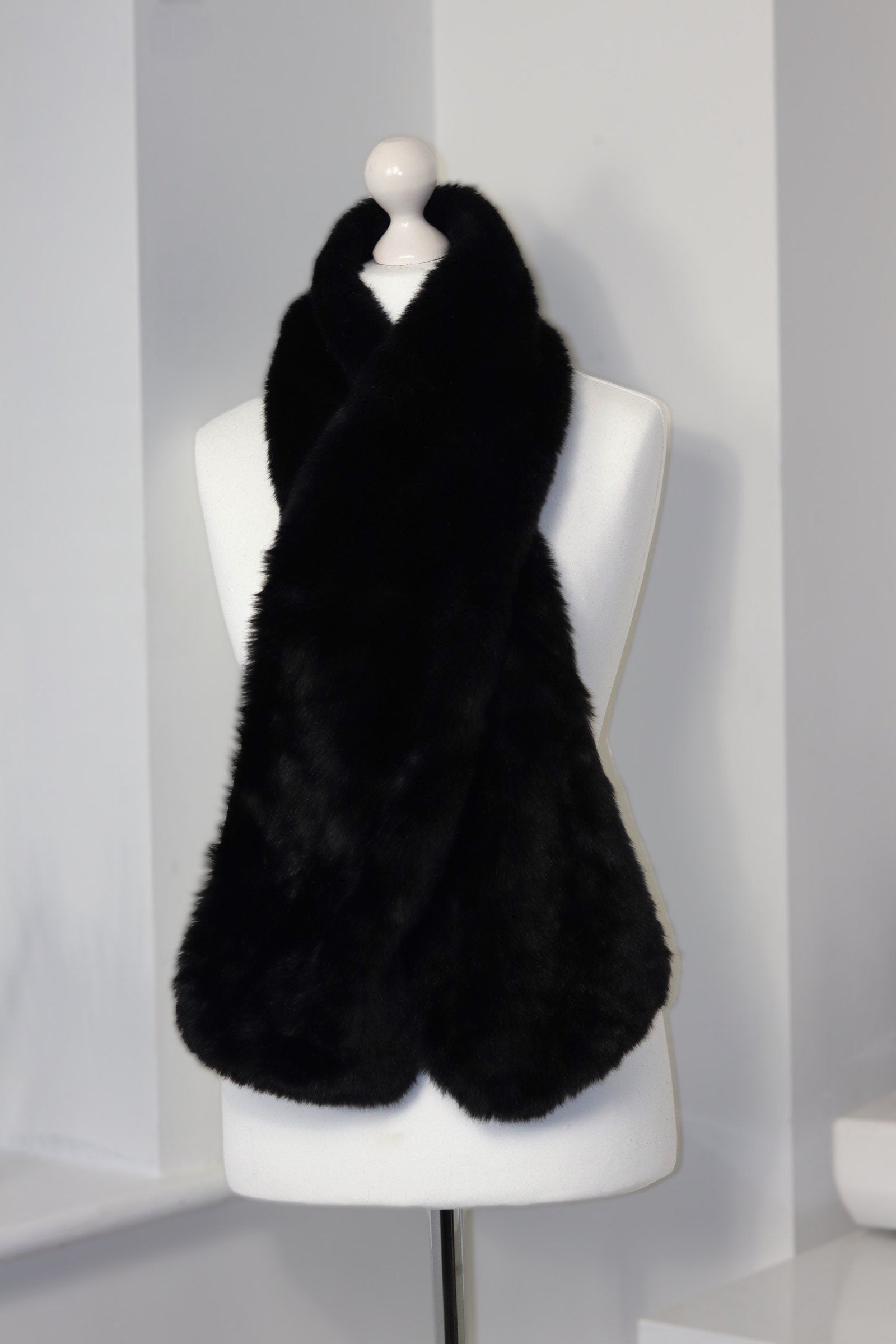 Handmade Black Luxurious Faux Fur Scarf