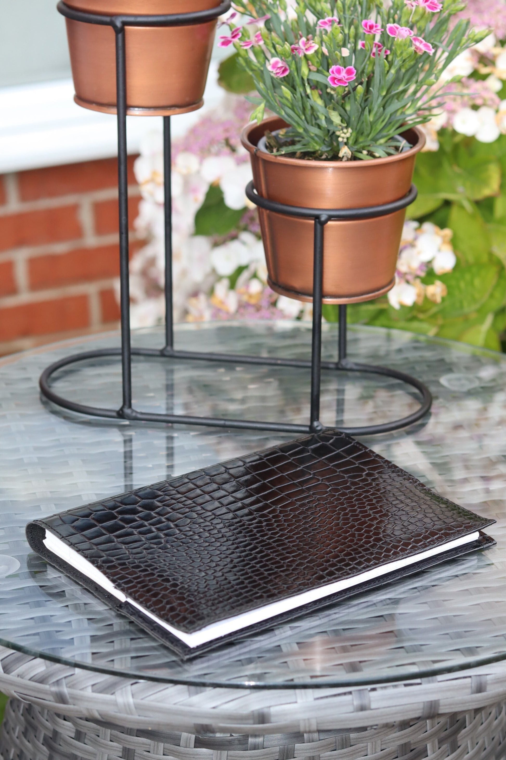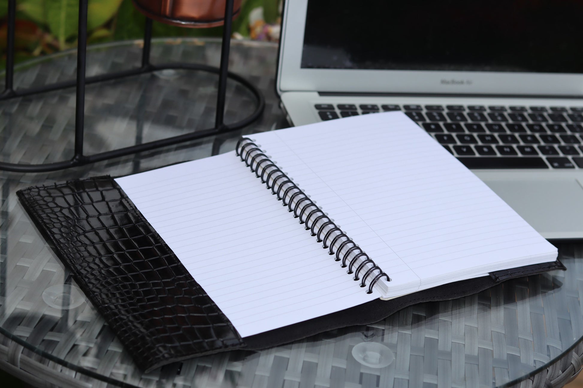 Made out of Embossed and glossy print. It is a very detailed snakeskin vegan leather. This book cover Is perfect for protecting your books, journals and note books. Also brings style to your everyday lifestyle covering your books with this stylish book cover.