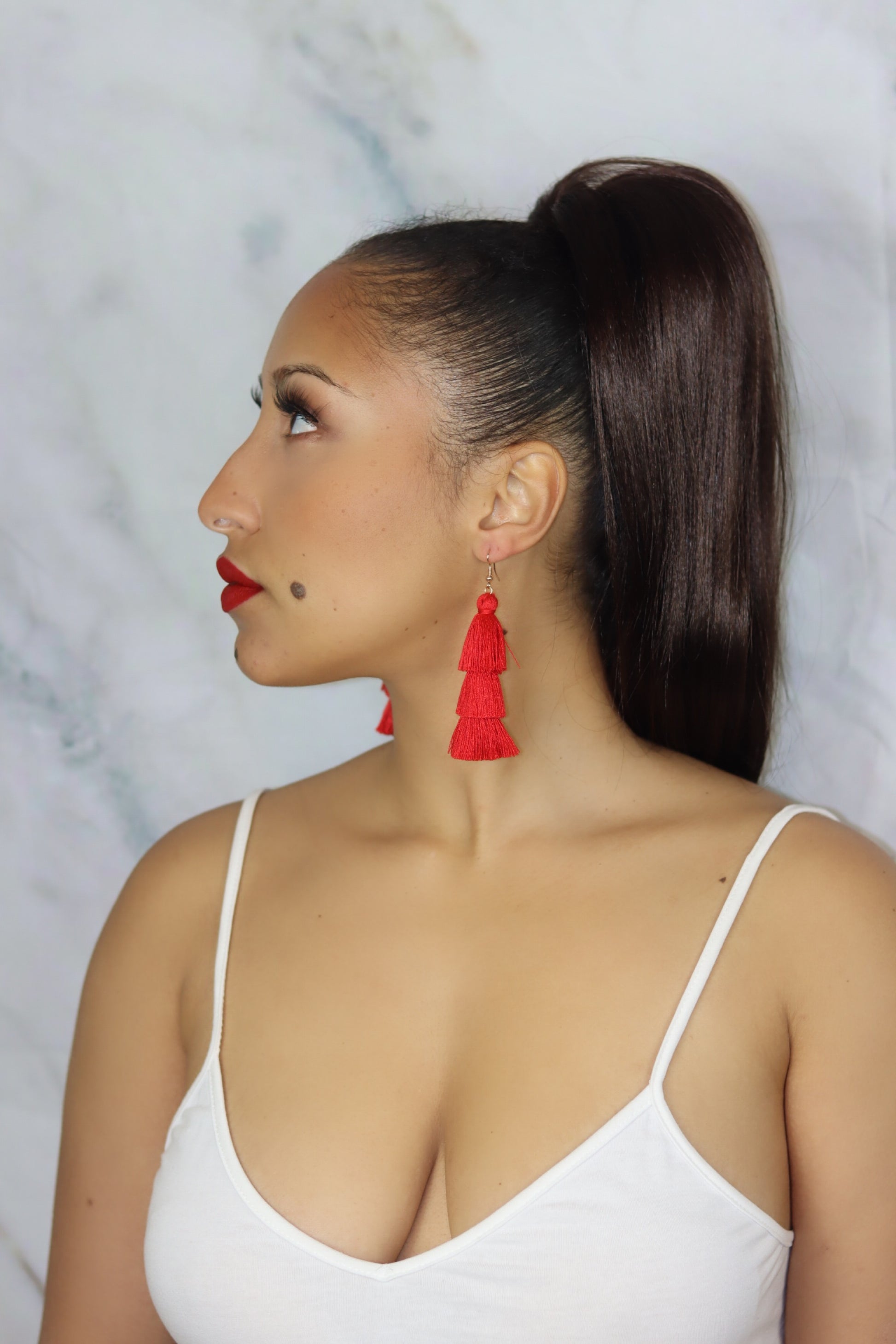 Red Tassel Fringe Earrings